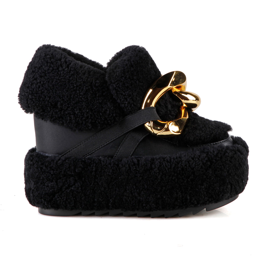 Faux Fur Tassel Hidden Wedge Women’s Booties