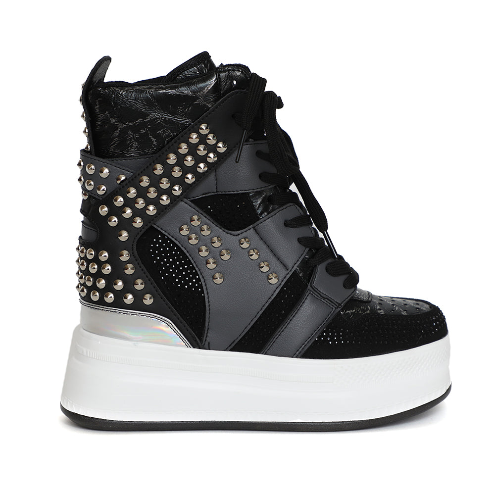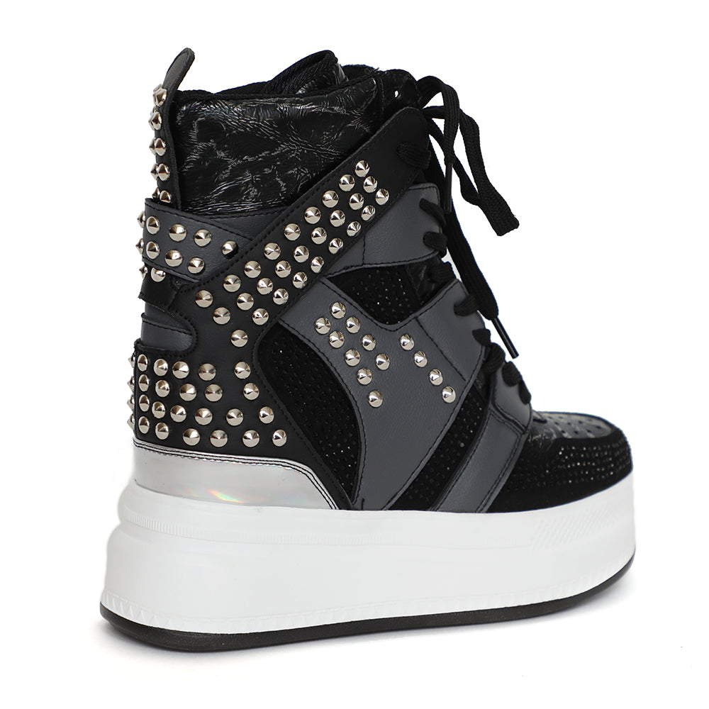 Studded High Top Lace Up Hidden Wedge Women’s Sneakers